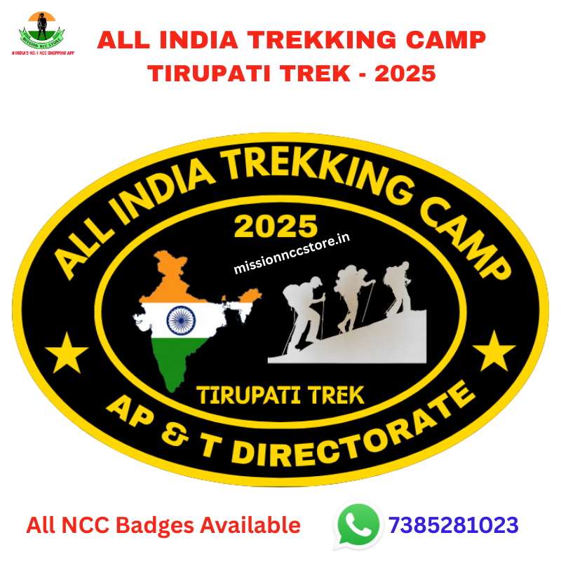 Celebrate your dedication and NCC adventure spirit with the All India Trekking Camp Tirupati Trek – AP & T Directorate NCC Badge 2025, exclusively available at Mission NCC Store.